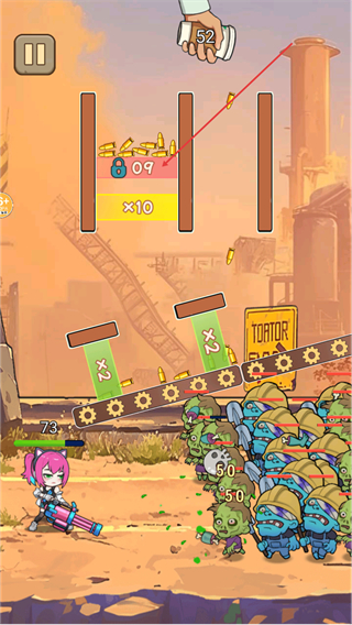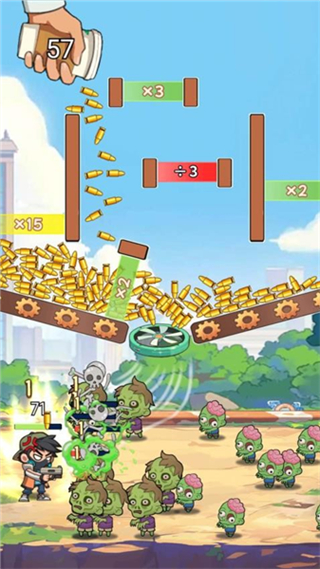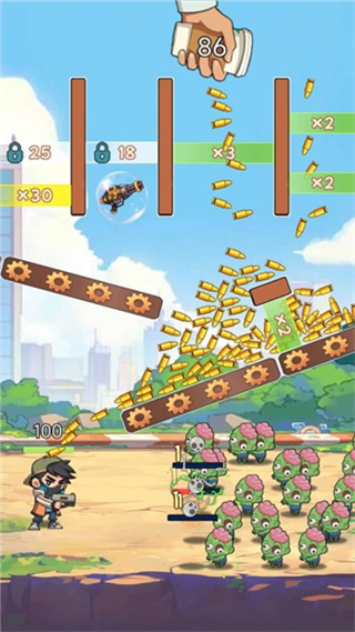 3、保持射击节奏,利用倍数加成压制僵尸群,推进关卡的清敌进度。