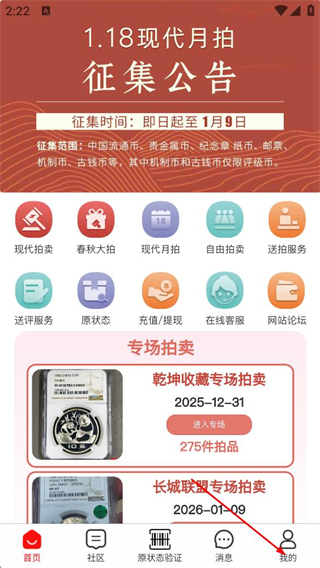 涵盖春秋大拍、品类专场等五大类拍卖活动,采用线上线下结合模式提供现场预展,拍品覆盖各类现代钱币精品,让藏友精准锁定心仪藏品轻松参与竞拍。