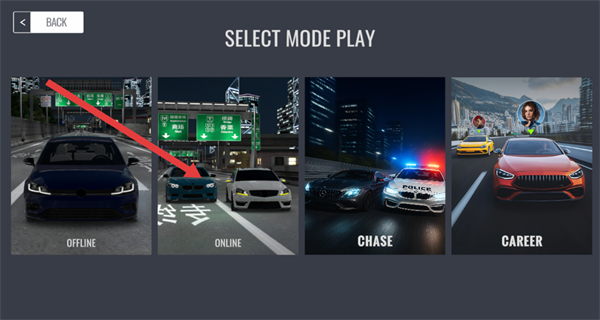 2、在“SELECT MODE PLAY”界面,选择ONLINE模式,进入房间信息列表页面。