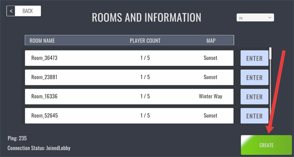 3、在“ROOMS AND INFORMATION”界面,点击右下角的CREATE按钮,进行创建房间。