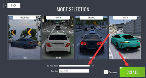 4、进入房间设置页面,可在下方区域调整最大玩家数、设置房间名,确认后点击右下角的CREATE按钮,完成房间创建。