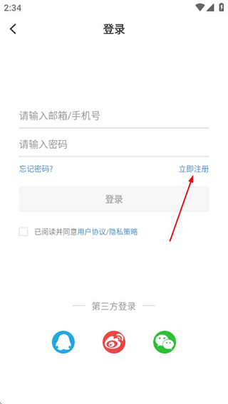 3、在登录页面,点击立即注册选项,可进入账号注册页面。