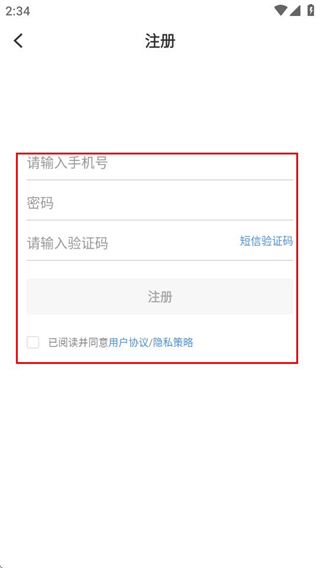 4、在注册页面,填写信息并勾选协议后,点击注册按钮即可完成账号注册。