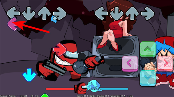 3、紧跟红色箭头指引,点击右侧的方向按钮,跟随节奏完成操作,这是音游类玩法的核心步骤,确保操作契合节奏。