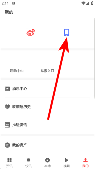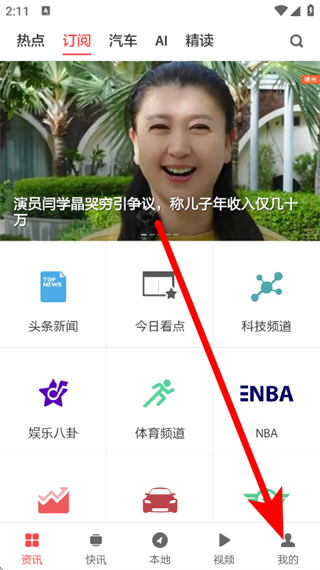 1、在zaker资讯页面,点击底部我的,进入个人页面。