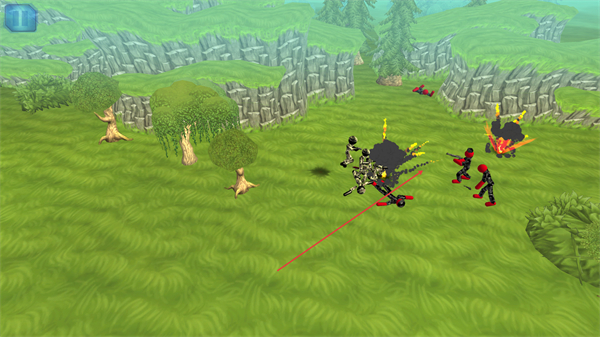 5、火柴人主题轻量化视觉风格,角色造型简洁有辨识度,战斗场景清晰直观,既降低视觉负担,又能让玩家快速聚焦战场局势,精准调整策略。