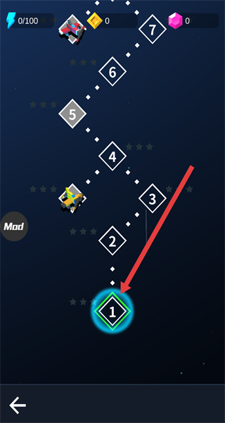 2、在关卡选择页,点击1号关卡,进入游戏战斗场景,开始飞行冒险。