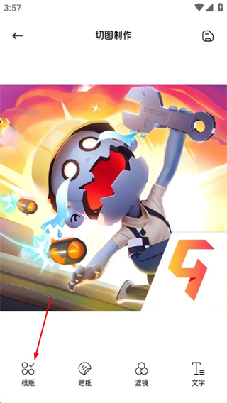 4、在切图制作页面,点击模板选项,可进入裁剪调整页面。