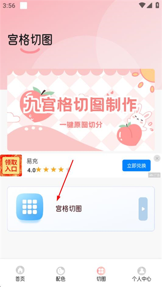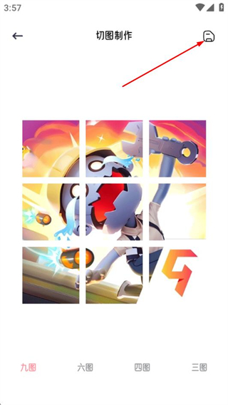 1、进入若雪相机后,点击底部的切图选项,可进入宫格切图页面。