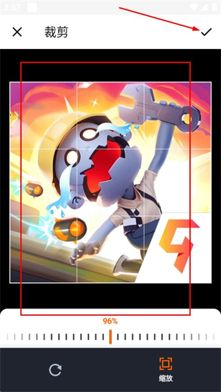 5、在裁剪页面,调整图片后点击对勾按钮,可完成裁剪设置。