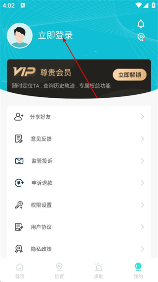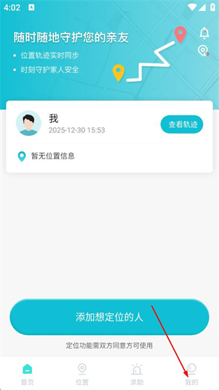 1、在该定位守护APP的首页,点击底部的我的选项,进入个人页面。