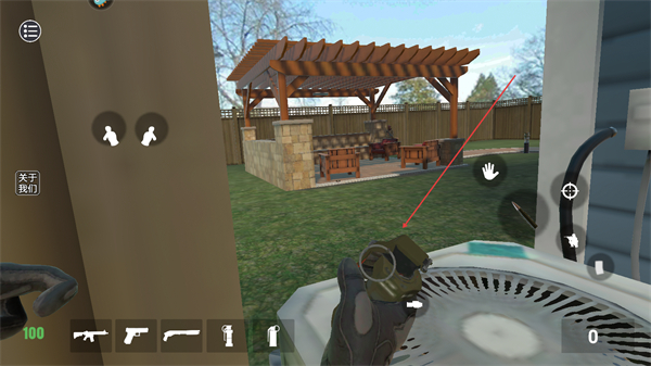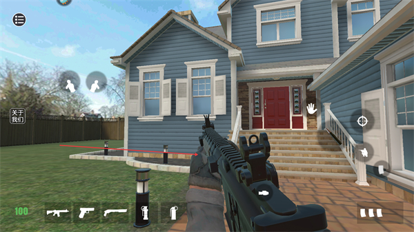 1、操控角色持武器移动,观察场景中的可互动区域如房屋、设施,准备搜索目标。