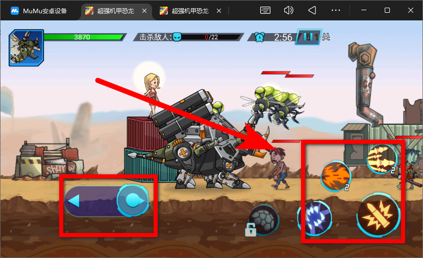 4、进入战斗界面后,操控移动键与技能键,击败敌人完成关卡。