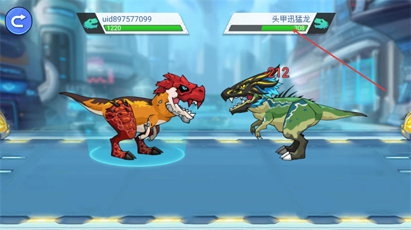 3、在与头甲迅猛龙的战斗过程中,释放技能后可观察到敌方生命值减少,需持续攻击直至其生命值耗尽。