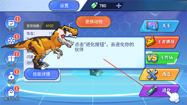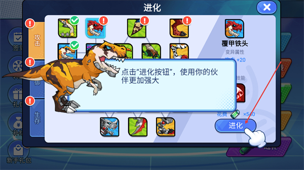 1、在进化界面按照提示点击进化按钮,消耗对应道具资源使你的伙伴更加强大,这是提升其能力的重要操作步骤。