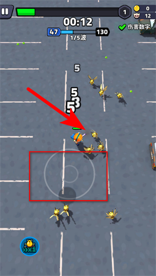 4、在关卡中通过屏幕操控角色移动,攻击敌方单位如带数字标识的敌人,推进1/5波的战斗进度。