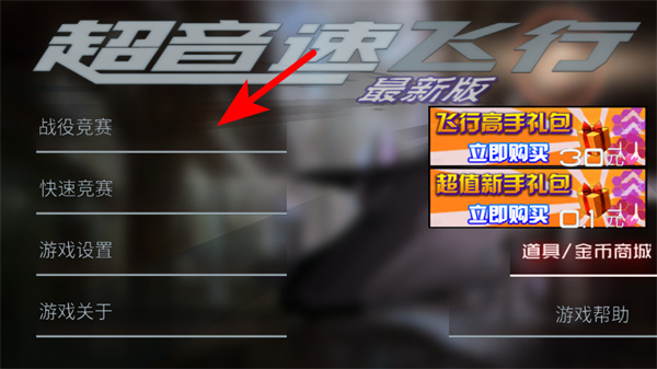 2、游戏中依照箭头指引,点击选择飞机按钮确定出战载具,选定“猛禽之翼”等机型,朝着竞速关卡前进。