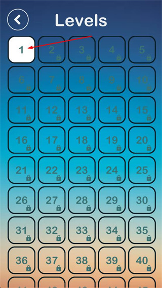 2、在关卡选择界面里,点击显示数字“1”的关卡选项,进入对应的第1关界面。