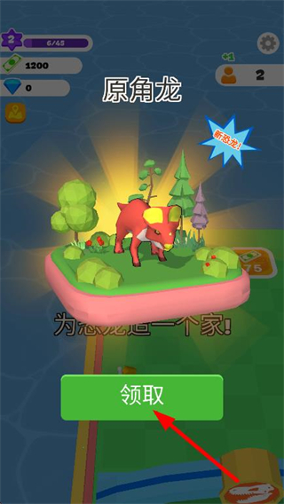 4、孵化完成后点击领取按钮,将恐龙加入岛屿,丰富岛屿。