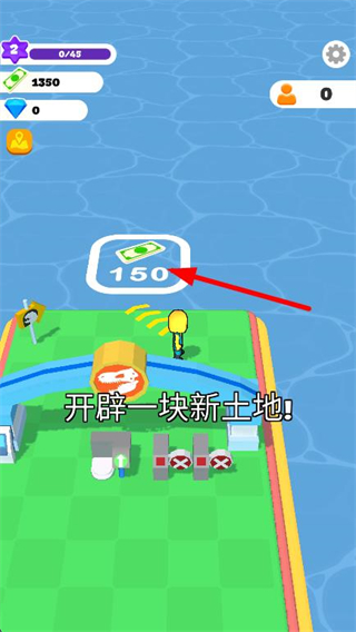 2、消耗金币靠近土地标识,解锁新土地,扩大可建设范围。