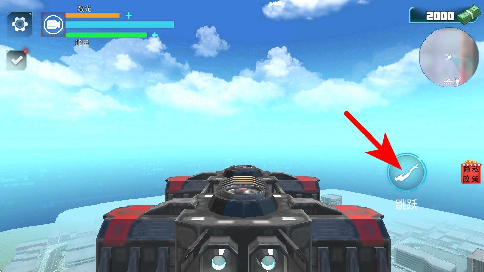 2、游戏中依照箭头指引,点击跳跃按钮操控角色移动,朝着目标区域前进,注意观察场景布局调整移动节奏。