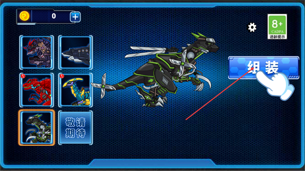 1、在该界面中点击组装按钮,即可启动对应机械恐龙的组装流程,这是获取该战斗伙伴的必要操作步骤。