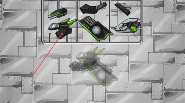 2、在零件界面选取对应的机械部件,将其放置到指定区域来推进组装进程,确保部件匹配以完成机械恐龙的拼接。