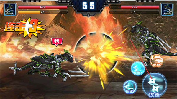 恐龙机甲可变形为不同战斗形态,每种形态对应专属攻击方式,切换过程流畅自然,既能应对近战突袭,也能适配远程输出,丰富格斗策略选择。
