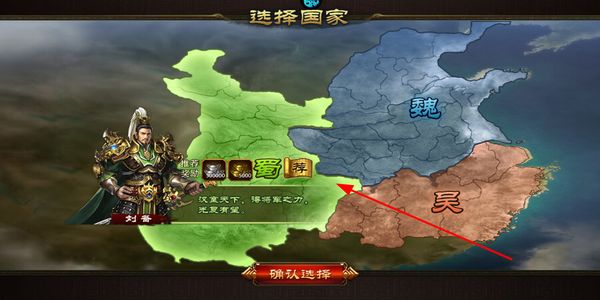 1、选择国家界面挑选对应的势力,点击确认选择按钮确定归属,开启对应势力的发展进程。