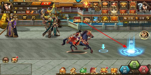 2、在主界面点击操控角色移动到出征挑战副本的目标区域,开启对应的战斗任务流程。