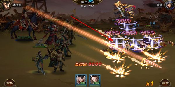 3、进入战斗后释放武将技能,对敌方目标造成伤害并附加负面效果,推进战斗的进度。