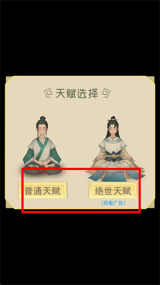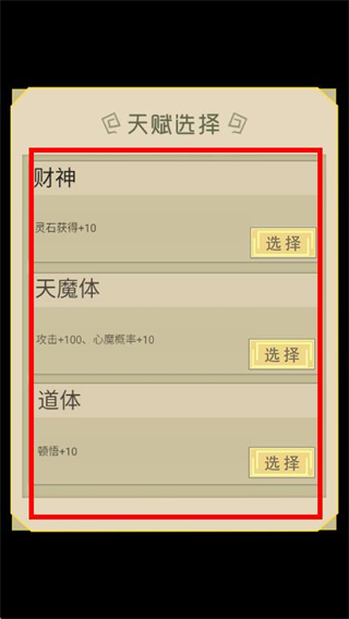 2、在天赋选择界面,选择天赋,确定修仙资质。