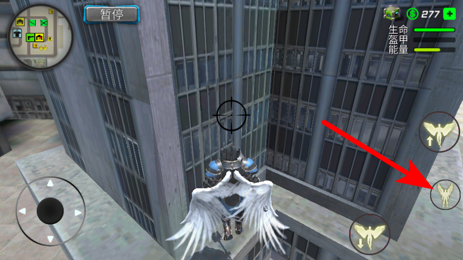 4、点击右侧的飞行类技能按钮,操控角色进行飞行移动,快速到达高处或远距离目标点。