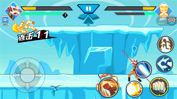 4、战斗过程中操控角色攻击,触发连击累积连击数,同时点击技能按钮释放技能,提升对战中的输出效率。