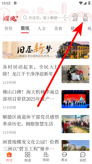 1、在顺德Plus首页,点击右上角我的按钮,进入登录页面。