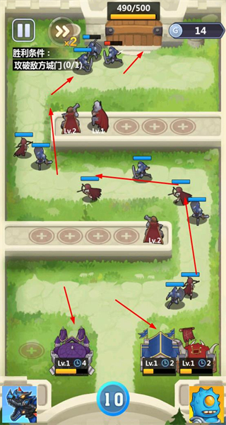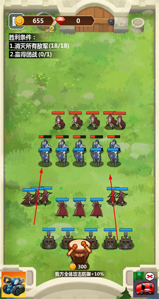 1、部署单位迎战敌军,这是推进关卡的基础操作,开启塔防战斗进程。
