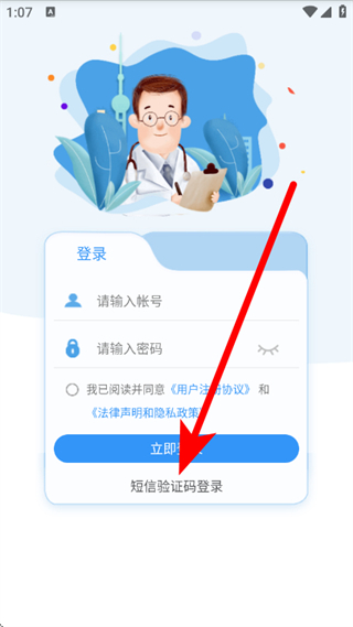2、在登录页面,点击短信验证码登录,进入短信登录界面。