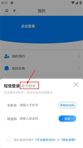 3、在登录弹窗中,点击账号登录标签,切换到账号登录界面。
