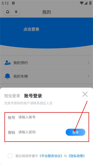 4、在账号登录界面,填写账号和密码后,点击登录,完成登录。