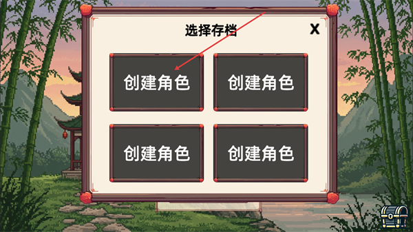 2、进入选择存档界面后,点击任意一个创建角色的存档位,即可开始创建属于你的游戏角色。
