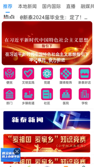 掌上新泰客户端是新泰市融媒体中心为本地市民精心打造的移动新闻与生活服务中心,集新闻资讯、视频直播、政务服务与生活服务于一体,构建起一个全方位的本土数字门户,该平台汇聚了本地新闻频道的实时直播信号,方便市民随时随地观看电视节目,并提供各类直播的精彩回顾功能。