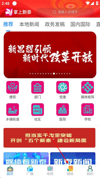 1、进入掌上新泰后,点击底部的报纸选项,可进入报纸页面。