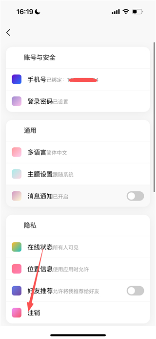 3、在设置页面,点击注销选项,可弹出注销账号的确认弹窗。