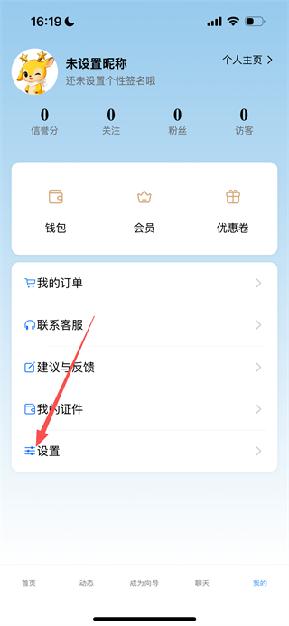 2、在个人中心页面,点击设置选项,可进入设置页面。