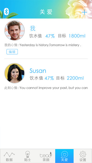 恋人间可通过APP观测对方是否喝水,并发送有趣信息提醒对方喝水,同时信息会显示在杯子上,时时关心你所在乎的人。