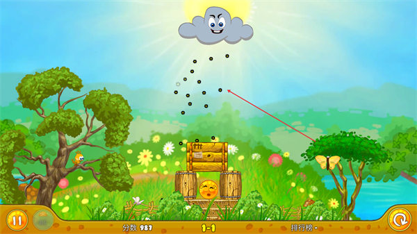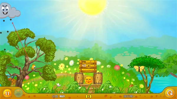 采用色彩明快的卡通美术风格,橙子形象软萌可爱,乌云与酸雨的设计夸张却不压抑,整体画面充满童趣,让闯关过程变得轻松又愉悦。