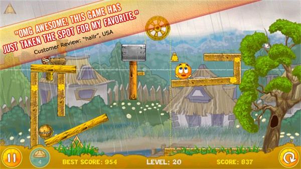 成功守护橙子后会触发可爱的庆祝动画,每一关的三星评价还能激励玩家反复挑战,探索更优的通关方案,收获满满的成就感。