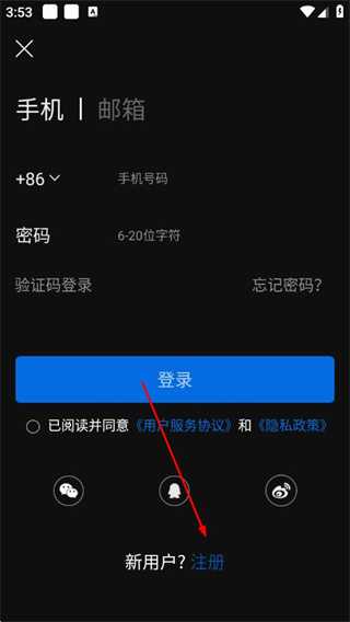 4、填写手机号、获取并输入验证码、设置密码,勾选协议后点击注册。