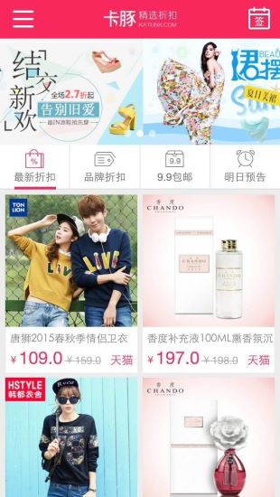 卡豚是沃德美业文化传媒有限公司旗下的一个第三方导购折扣网站,创立于2015年。卡豚网汇集了淘宝、天猫等各大平台限时秒杀,品牌特惠,九块九包邮的优质特价商品,随时随地抢特价。平台拥有专业选款、砍价团队,确保为用户提供最高性价比的单品和特色主题活动商品。卡豚折扣app是一款购物折扣软件,海量的折扣商品,覆盖鞋子、包包、服装等,让你买的物美价廉的商品,质量保证,赶快来下载吧。