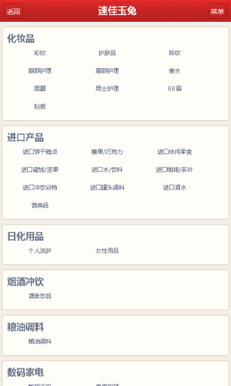 速佳玉兔(Android版)是玉兔网路科技有限公司推出的购物导航应用,具有商品搜索、浏览、购买、支付、收藏、分享等在线功能,以满足用户的购物需求。免费的应用平台,为你带来更多的购物乐趣。